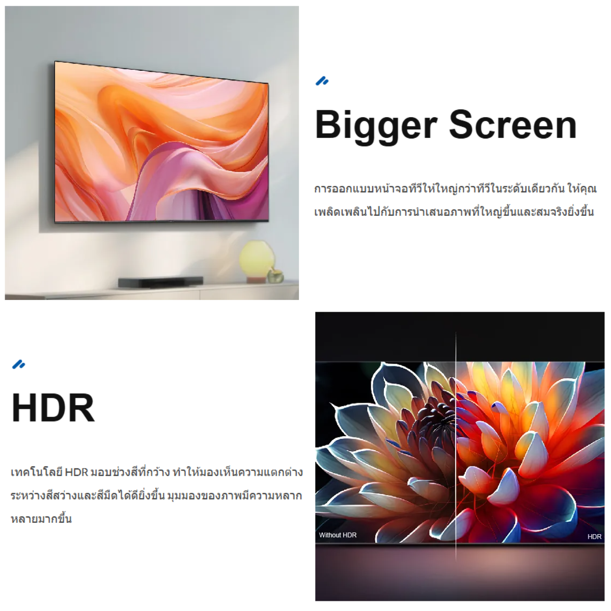 รองรับ HDR10 ทำให้ภาพมีความสมจริงและเพิ่มรายละเอียดที่มีชีวิตชีวามากขึ้น