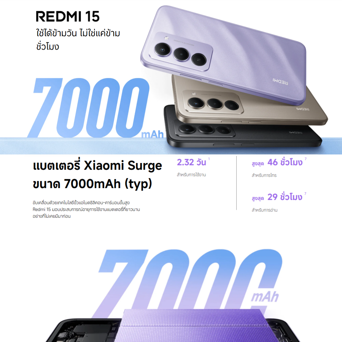 มือถือ Xiaomi Redmi 15 ความจุ 8+256GB (เครื่องศูนย์รับประกัน 1 ปี)