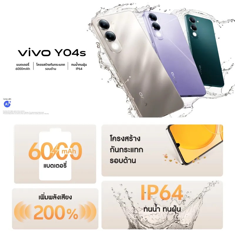 มือถือ Vivo Y04S ความจุ 4+128GB (รับประกันสินค้า 1 ปี)