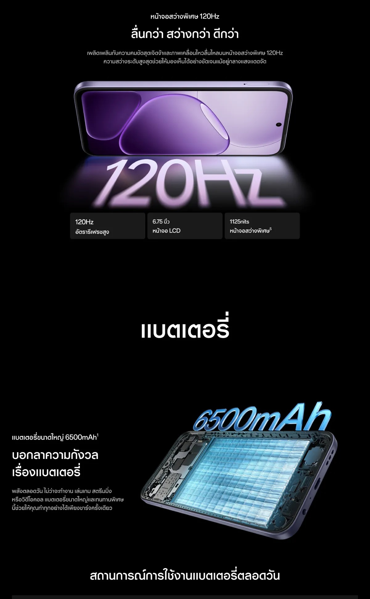 แบตเตอรี่ 6,500 mAh ชาร์จเร็ว 15W