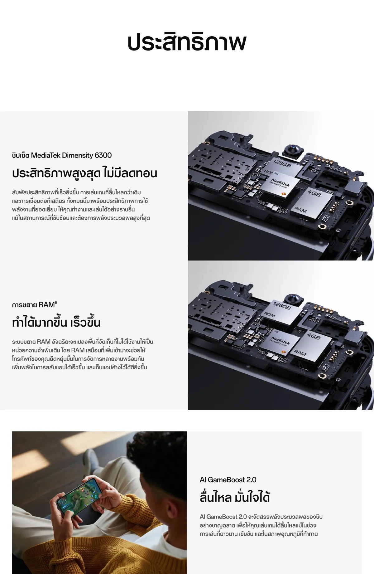 Chip : MediaTek Dimensity 6300 5G 8 cores ARM Mali-G57 MC2@1072MHz