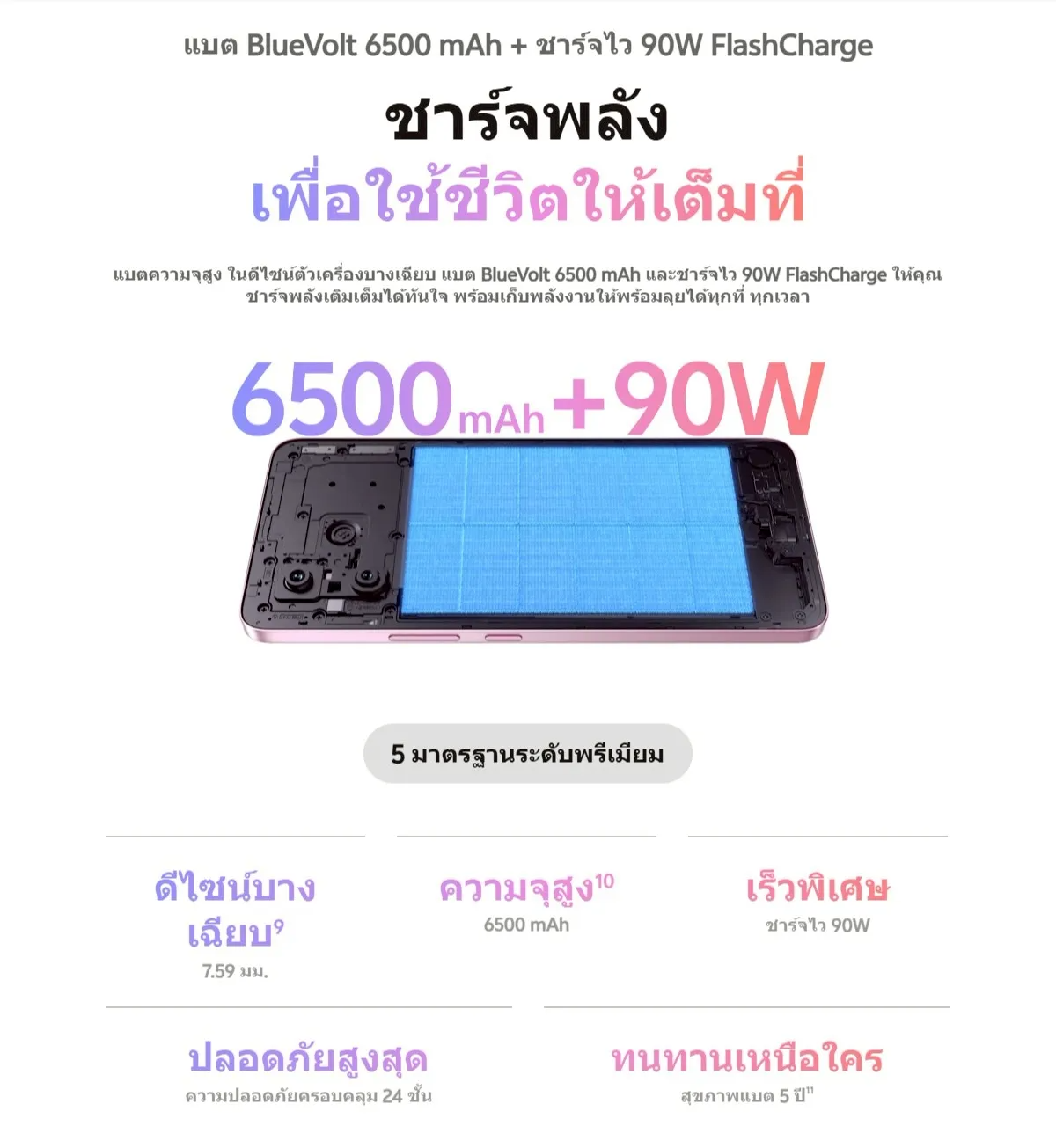 • แบตเตอรี่ 6,500 mAh ชาร์จเร็ว 90W