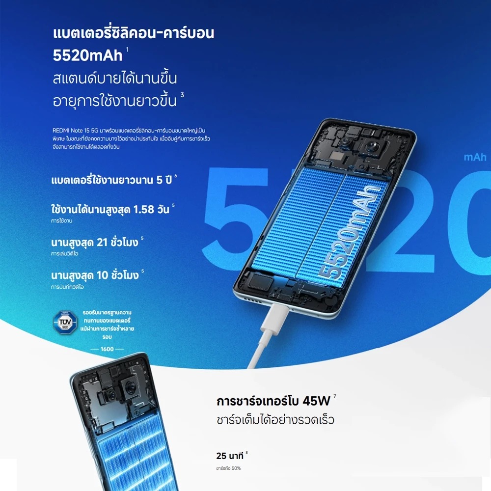 ✅แบตเตอรี่ 5,520 mAh ชาร์จเร็ว 45W