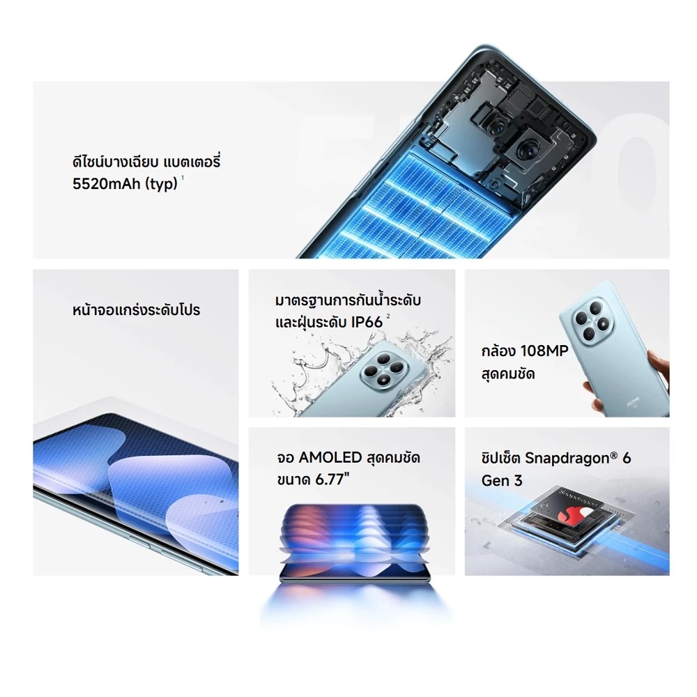 มือถือ Xiaomi Redmi Note 15 5G ความจุ 8+256GB (เครื่องศูนย์รับประกัน 1 ปี)