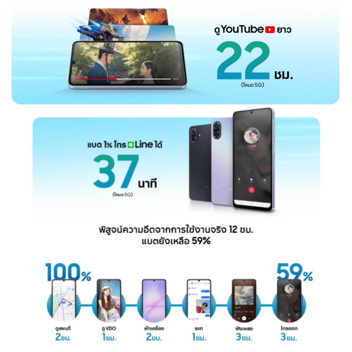 Galaxy A07 5G ทั้งจอใหญ่ลื่นตา กล้องคม แบตอึด ชิปแรง แถมยังกันน้ำกันฝุ่น IP54 ได้อีก ใช้งานลื่นไหล อัปเดตยาว 6 ปีไม่ต้องกลัวตกเทรนด์ ใครหามือถือไว้เล่น ถ่าย ทำงาน หรือดูหนังเครื่องเดียวจบ
