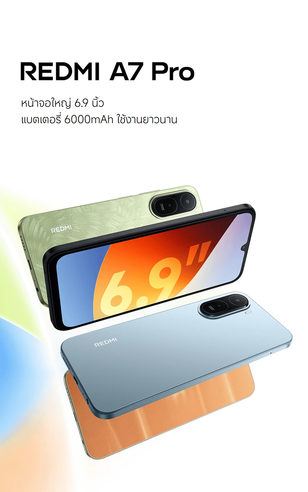 Redmi A7 Pro สมาร์ทโฟน คุ้มค่า จอใหญ่ แบตอึดสะใจยกระดับมาตรฐานใหม่ของซีรีส์ A ด้วยการอัปเกรดหน้าจอขนาดใหญ่พิเศษและแบตเตอรี่ที่มีความจุสูงที่สุดในระดับราคาเดียวกัน ตอบโจทย์การใช้งานทั่วไป ดูหนัง และโซเชียลมีเดียได้อย่างยาวนาน