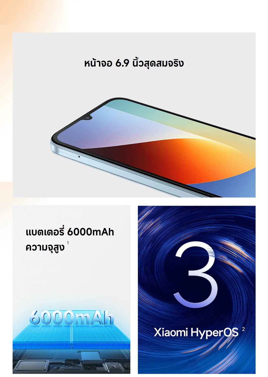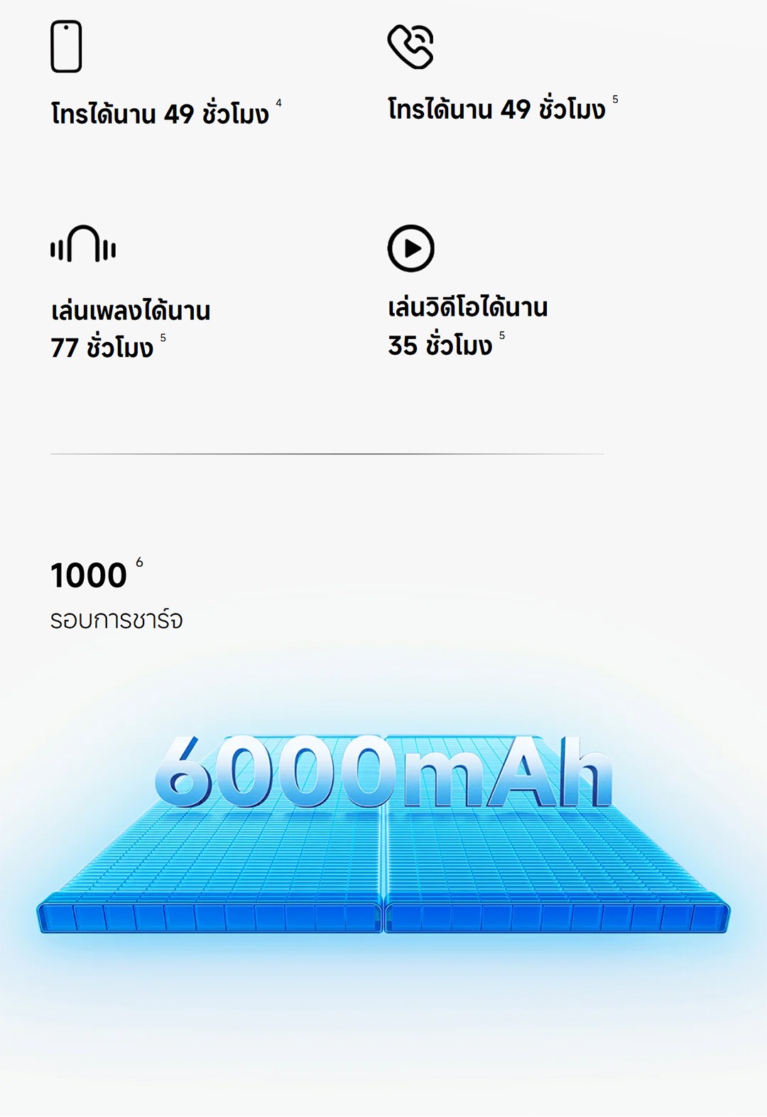 • แบตเตอรี่ 6,000 mAh ชาร์จไว 15W