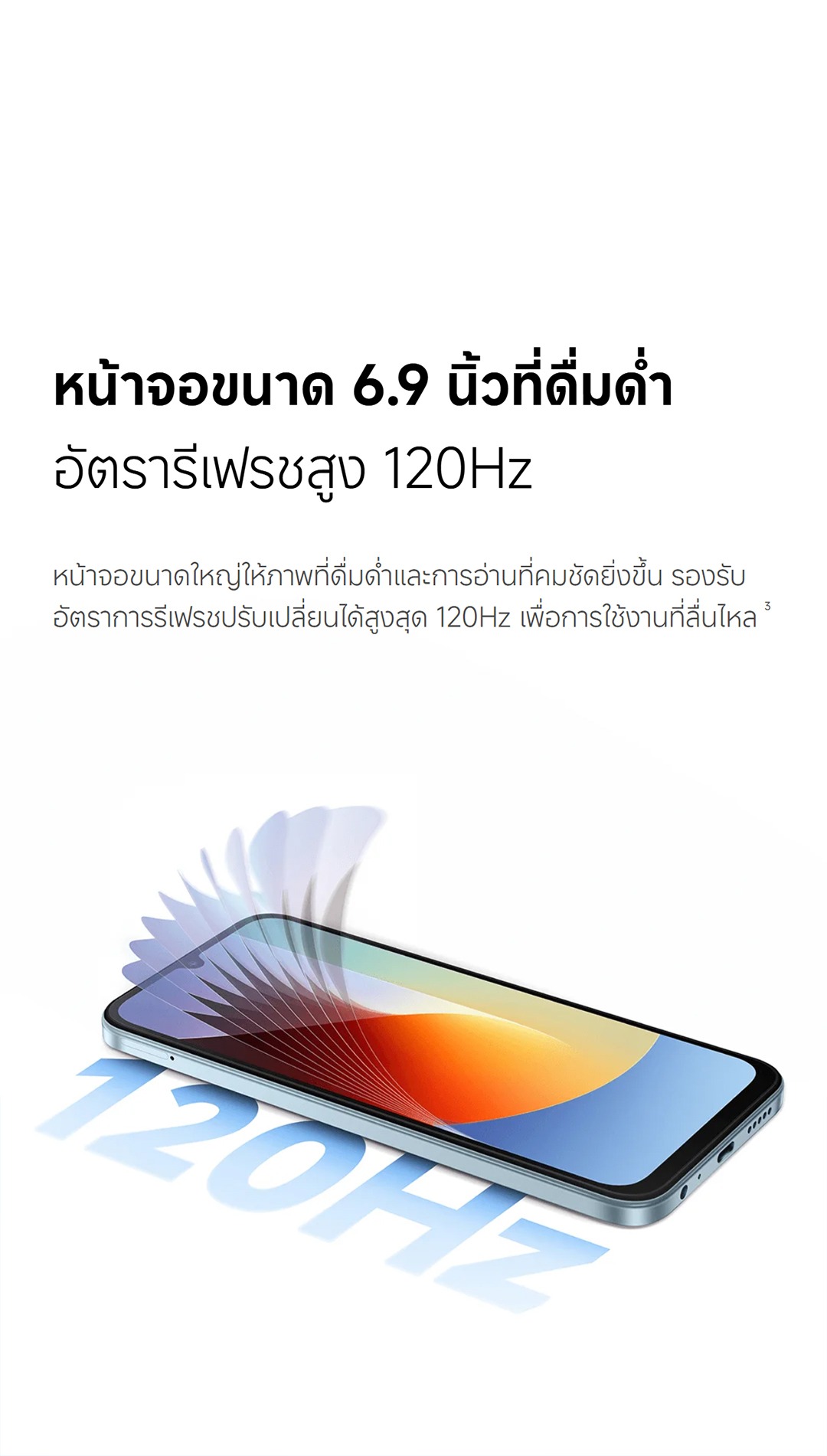 • จอใหญ่ 6.90 นิ้ว พร้อม Refresh Rate 120Hz